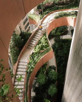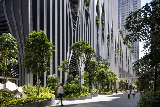 At the core of the building between the hardscapes of the offices and residences are four connected levels of organic softscape dubbed the “Green Oasis” – a 35m open-air garden for work, casual strolls, relaxation, exercise, and events. The Green Oasis seamlessly weaves nature vertically into the architecture and satisfies the spatial limitations of the locale while granting tenants and residents abundant access to green spaces – animating the elegant smoothness of modern architecture with the ubiquitous tropical nature of the region.