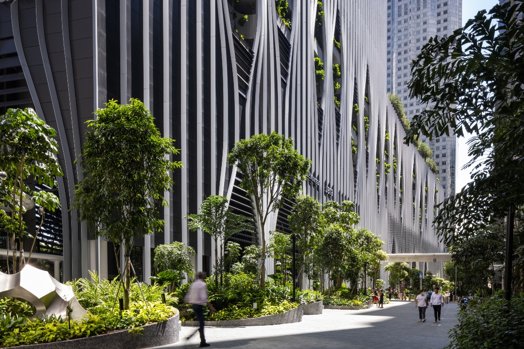 On street level, CapitaSpring restores a portion of the historically significant Market Street to the public realm by pedestrianizing the stretch and creating an expanded landscaped area which creates new green breathing space in the high-density CBD for the neighboring tenants and passersby.