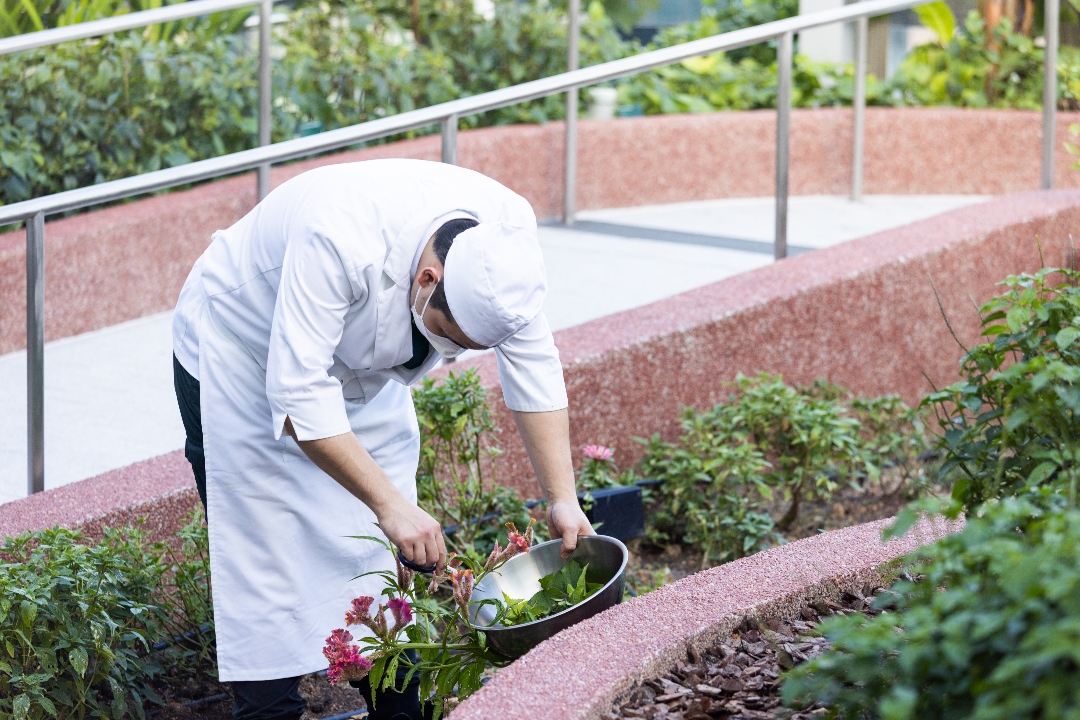CapitaSpring’ s rooftop garden, with views of the city, is home to Singapore’s tallest urban farm operated by 1-Group. Currently, over 150 species of fruits, vegetables, herbs, and flowers, are grown across five thematic plots to supply the rooftop restaurants with fresh greens.