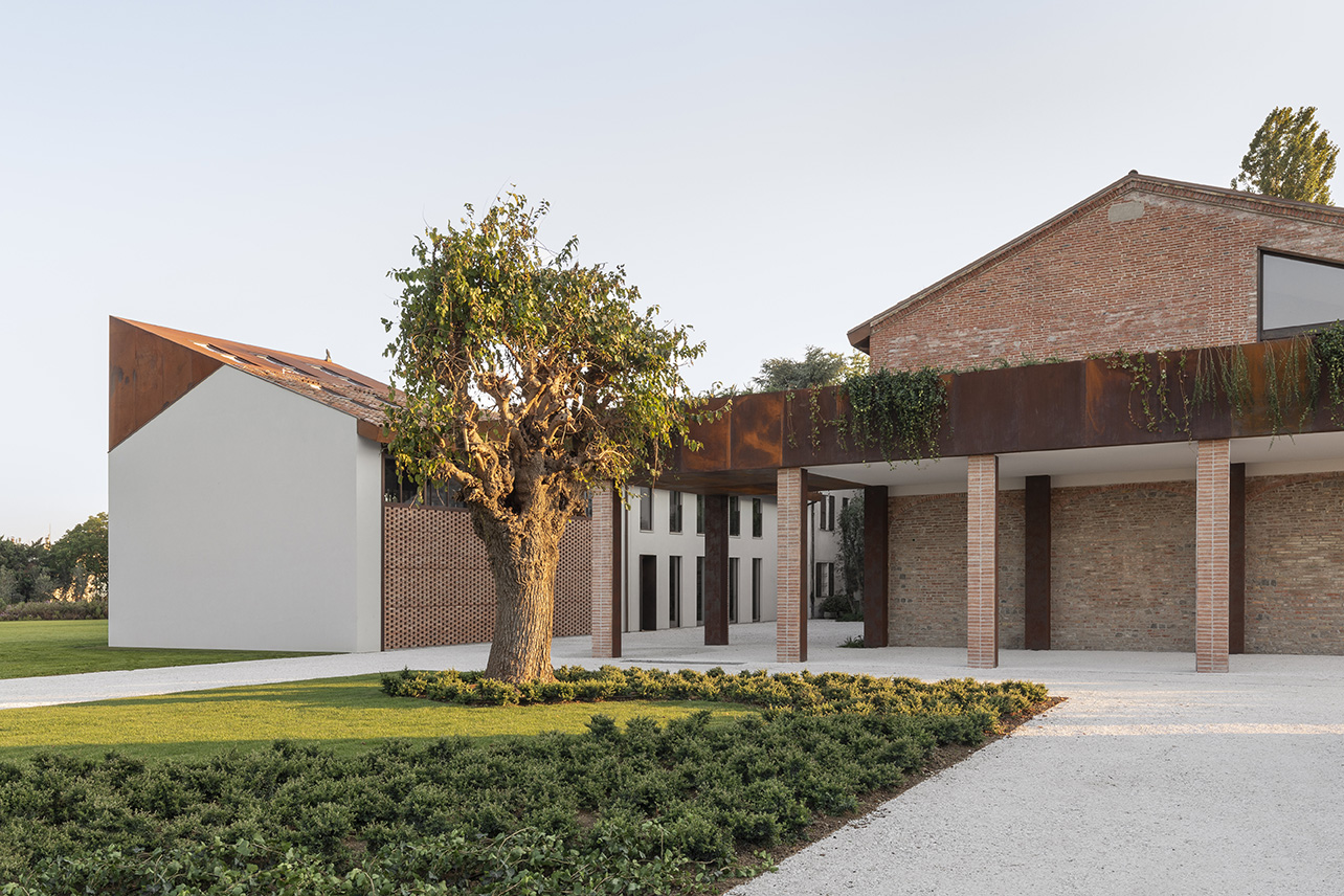 “Light enters the interior space through the pierced brick wall, corten steel stairs and tree branches. By doing so, it also mingles with the architectural details of the house, and leaves subtle shades all around it,” adds Andrea Cassi, partner of CRA.
